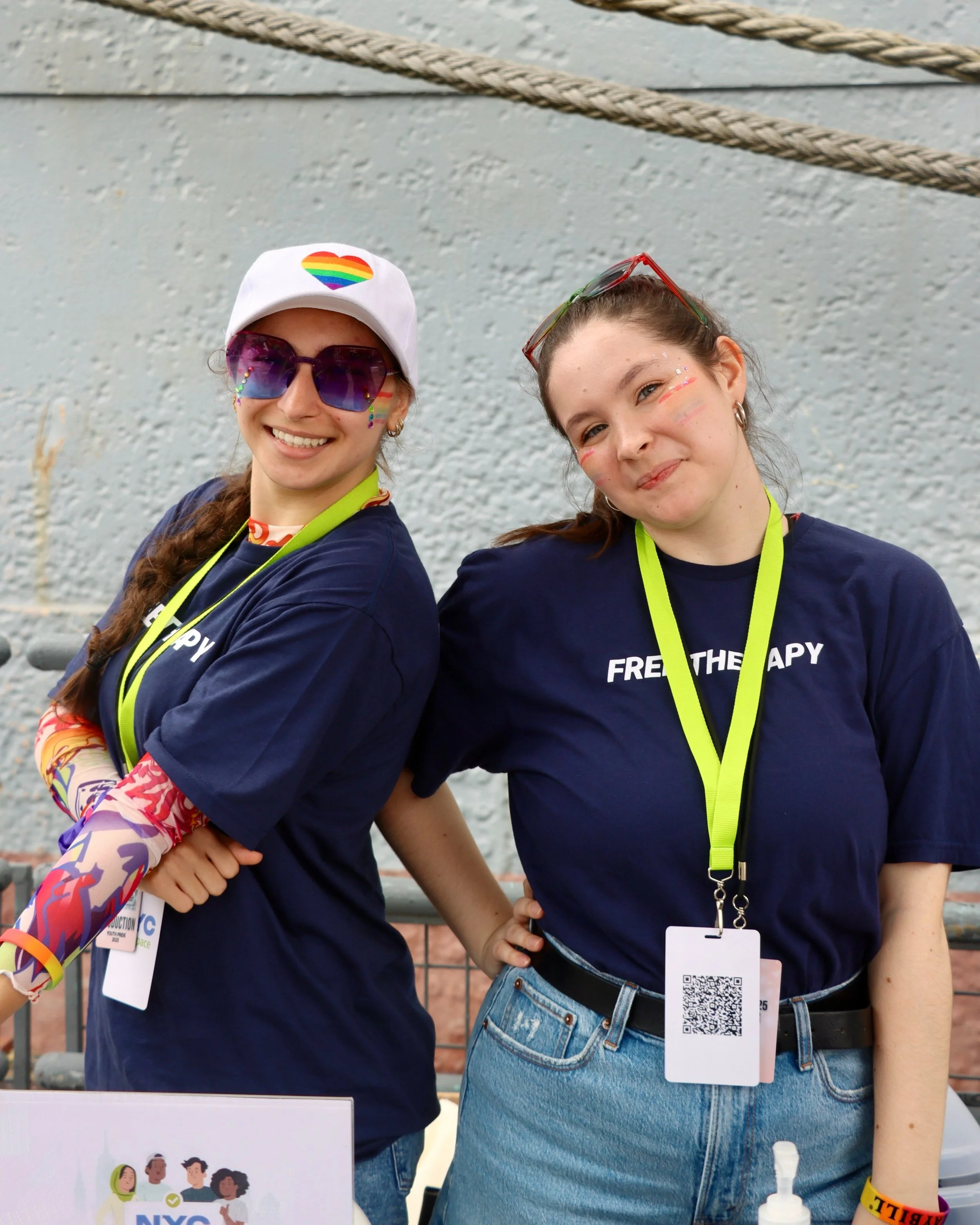 At theatreMAMA, our initiative reaches students primarily through high school activities like mental health workshops, lunchroom tabling, and classroom “push-ins” during advisory periods at NYC high schools. During summer, the team adapts by visiting places like public pools, PSAL camps, events, street fairs, and more by offering snacks and sparking conversations. Because therapy can feel intimidating, especially for young people, we focus on making mental health support feel approachable and even fun. Interactive elements like choosing between Takis or Nerds, “friend incentive” cards, and playful stickers like “I told my therapist about you” help teens feel more comfortable engaging with our team and the idea of therapy itself. We tailor every activation to our audiences, such as casting younger ambassadors for Teenspace events to create peer-to-peer connections that resonate more deeply with teens across the city.